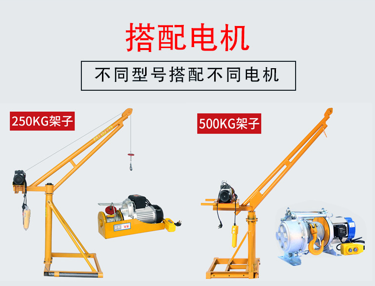 2、支架部分由主支杆,及懸臂吊杆構成的。轉動臂可在主杆上轉動,在臂端設有行程開關以防操作失誤或按鈕失靈而造成的起吊過位事故。操作按鈕起動器實現電機正反轉可將鋼絲繩卷繞、放開,並通過支架部分滑輪起吊,下放物件來完成吊運作業。